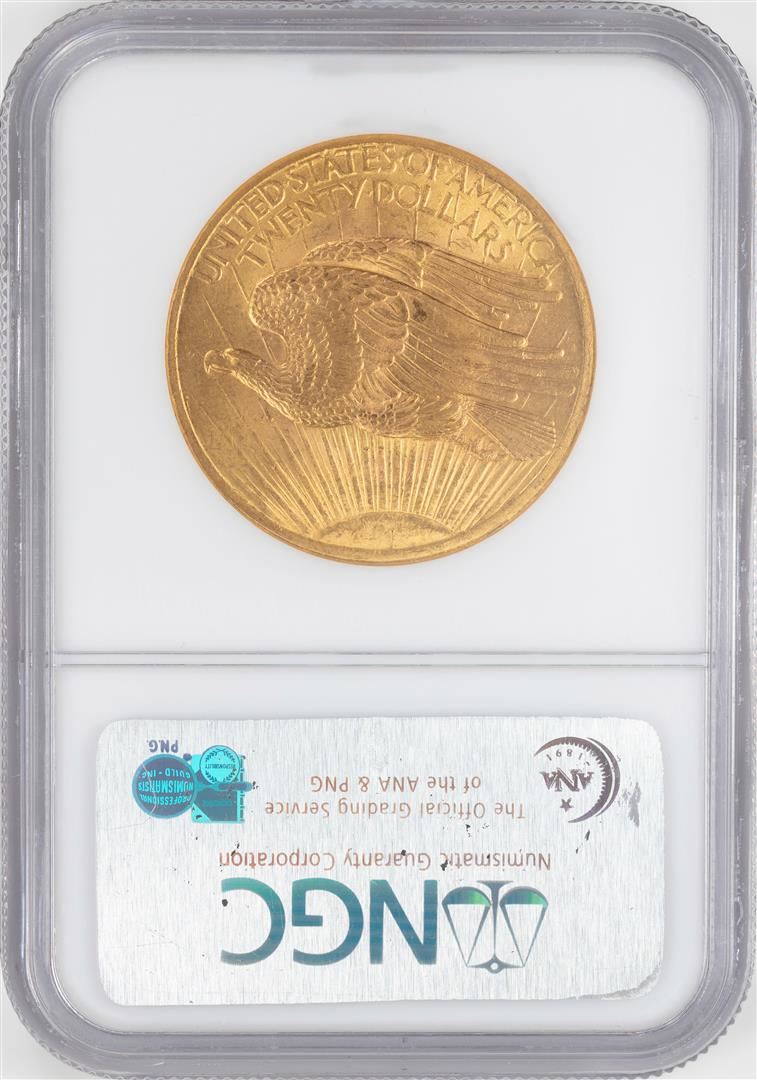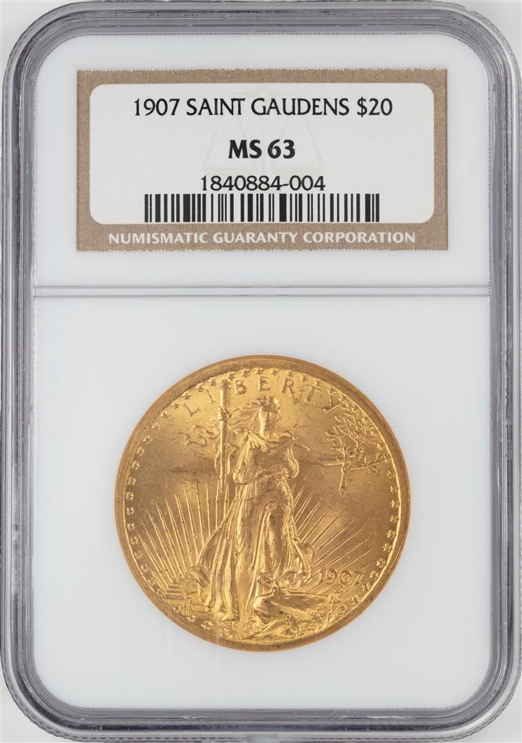 One 1907 $20 St. Gaudens Double Eagle Gold Coin NGC MS63. NGC Certified.