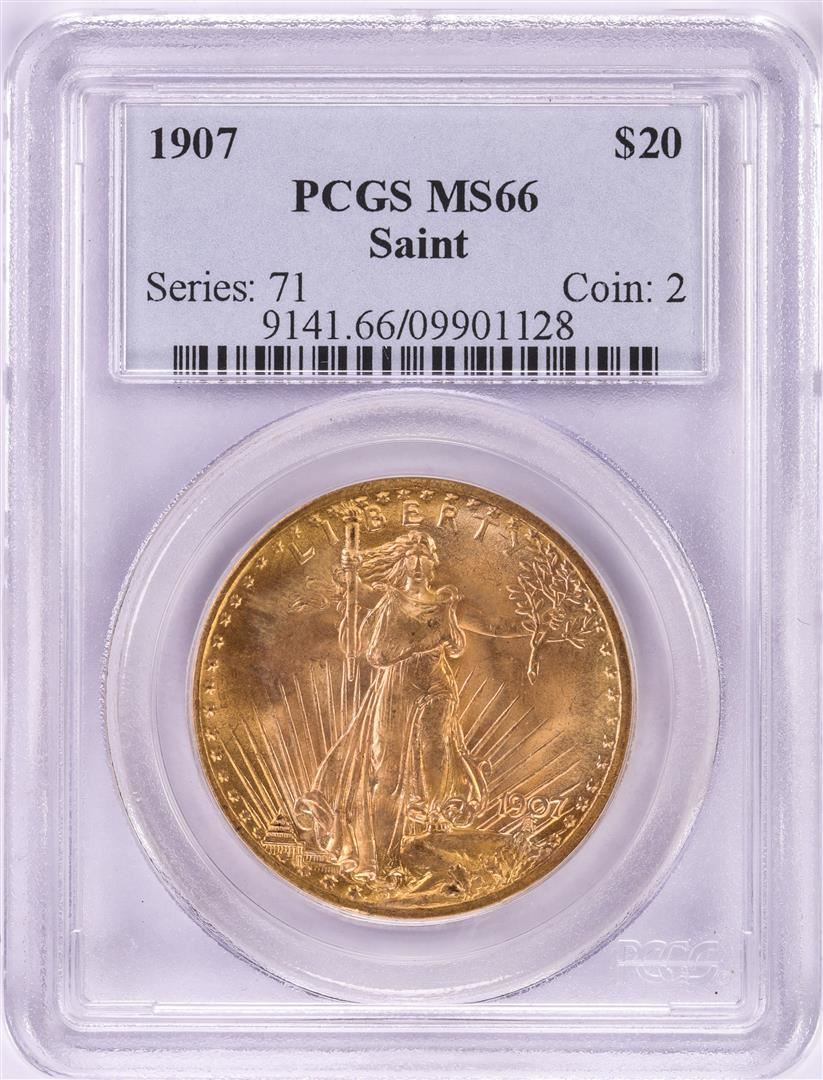 One 1907 $20 St. Gaudens Double Eagle Gold Coin PCGS MS66. PCGS Graded.