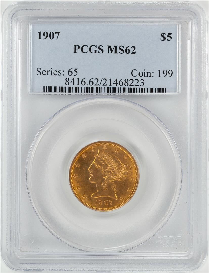 One 1907 $5 Liberty Head Half Eagle Gold Coin PCGS MS62. PCGS Graded.
