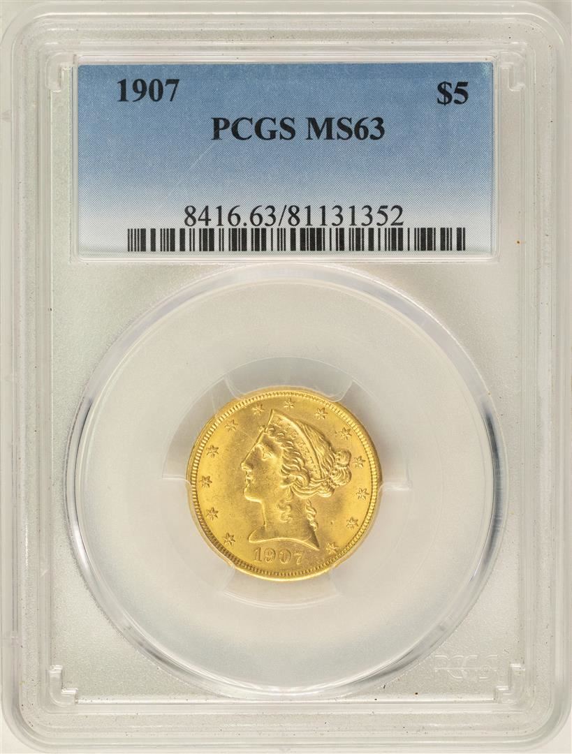 One 1907 $5 Liberty Head Half Eagle Gold Coin PCGS MS63. PCGS Graded.