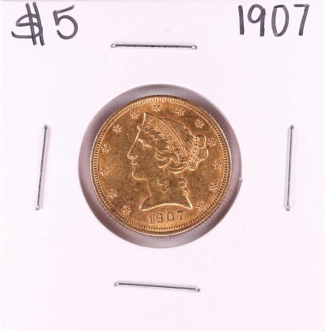 One 1907 $5 Liberty Head Half Eagle Gold Coin.