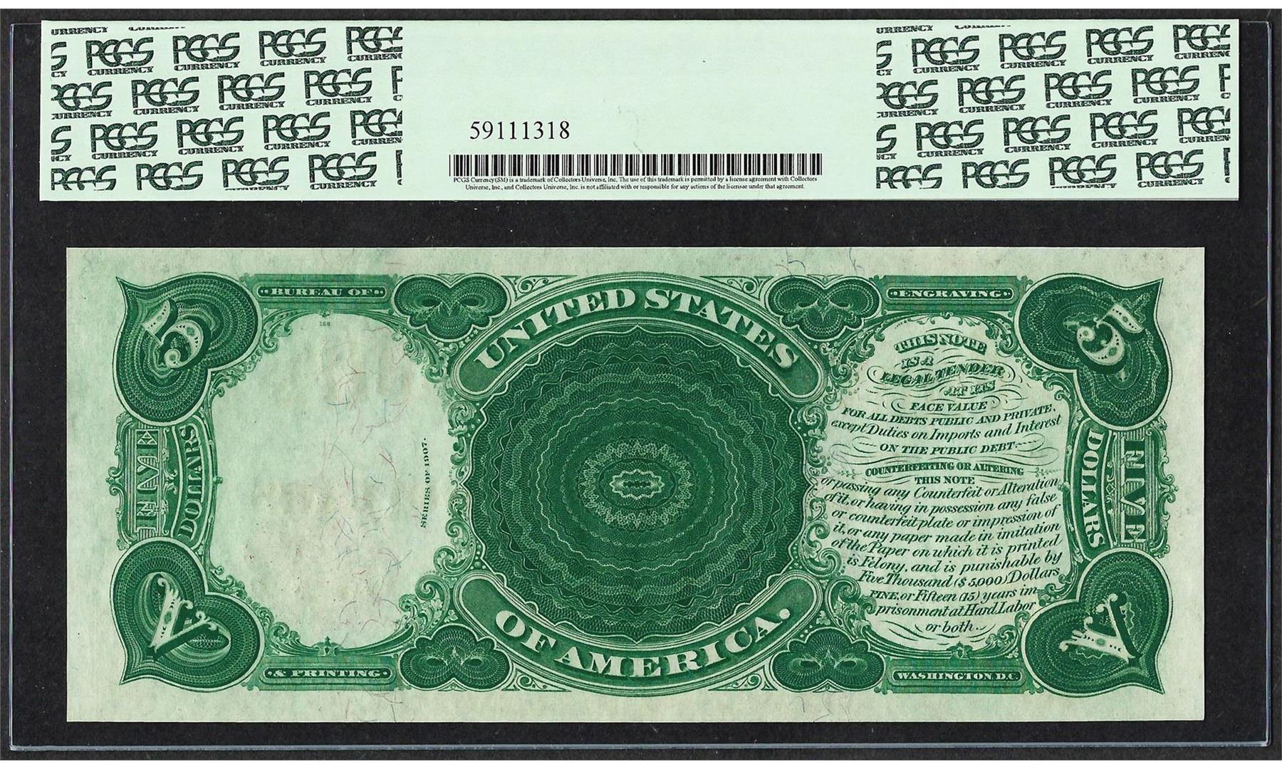 One 1907 $5 Woodchopper Legal Tender Note Fr.85 PCGS Gem New 66PPQ. PCGS Graded.