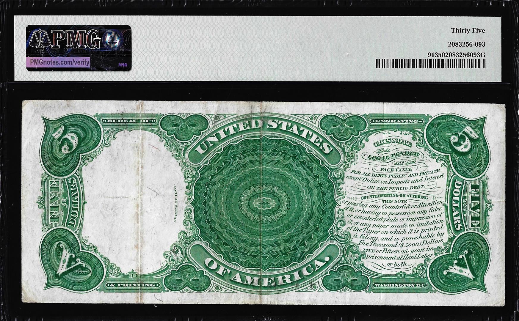 1907 $5 Woodchopper Legal Tender Note PCBLIC Error Fr.91 PMG Choice Very Fine 35