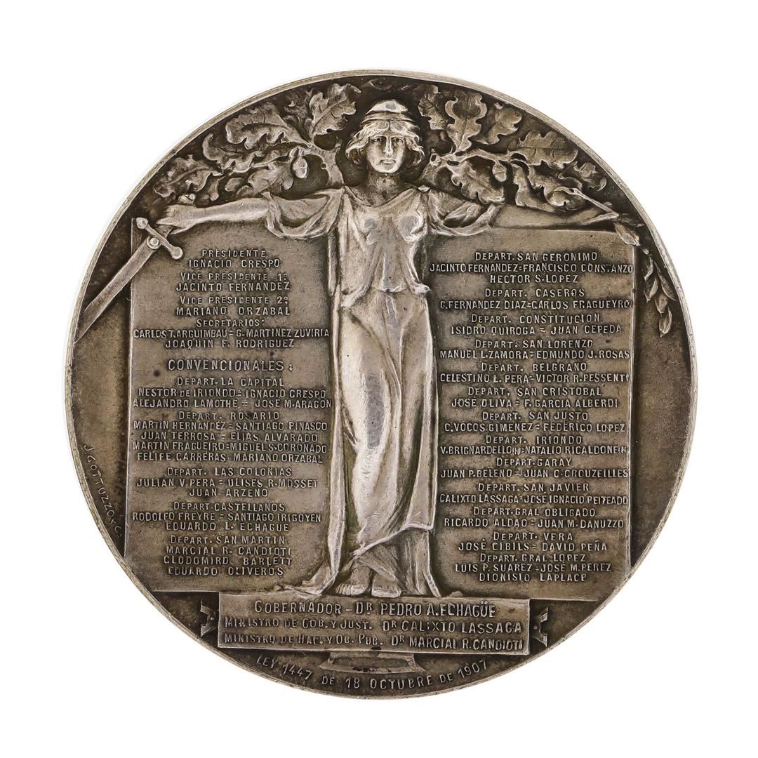 One 1907 Argentina Santa Fe Province Silver 4 oz Medal .