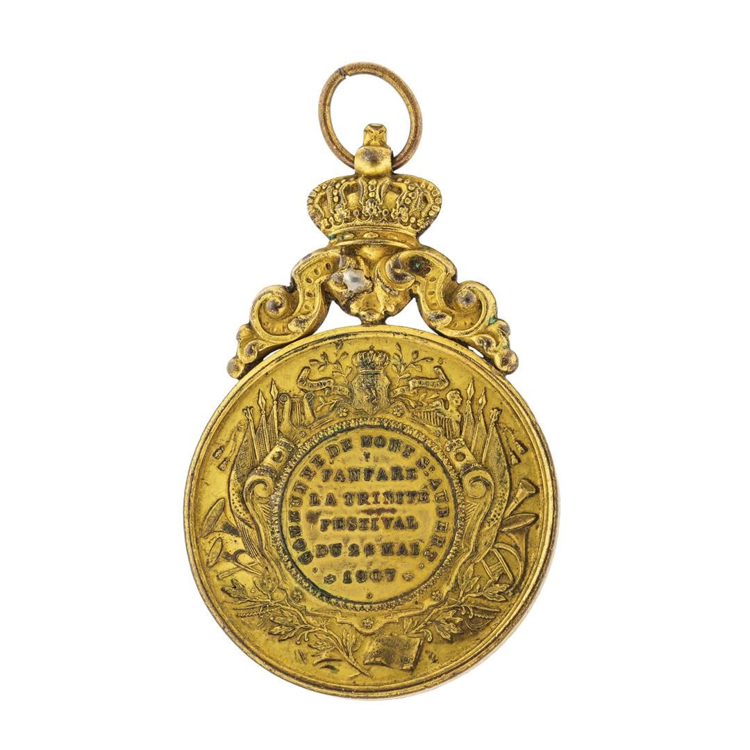 One 1907 Belgium Brass Band Gilt Bronze Music Medal.