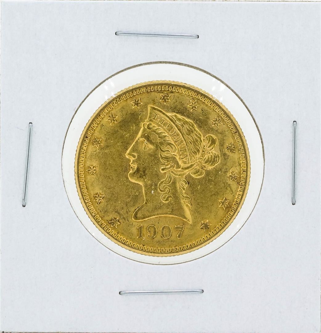 One 1907-D $10 Liberty Head Eagle Gold Coin.