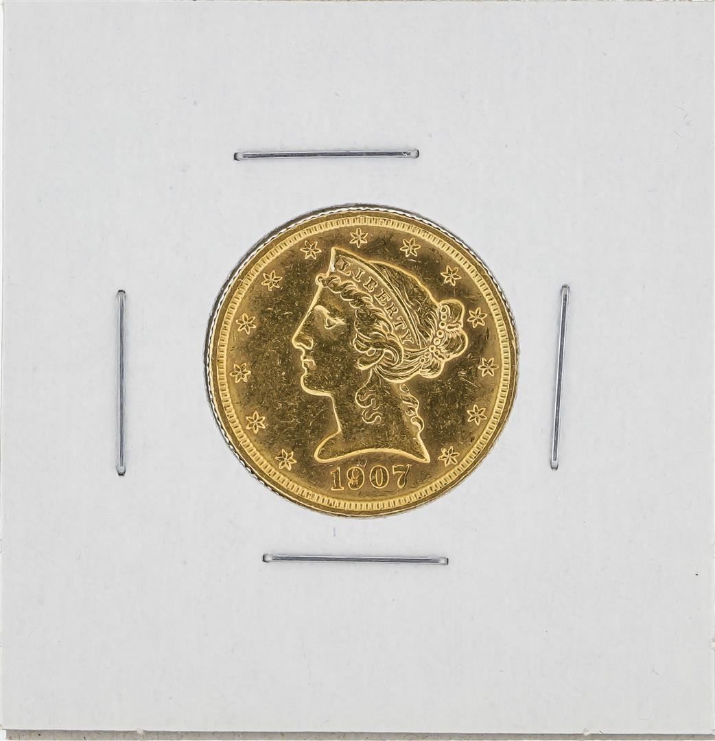 One 1907-D $5 Liberty Head Half Eagle Gold Coin.