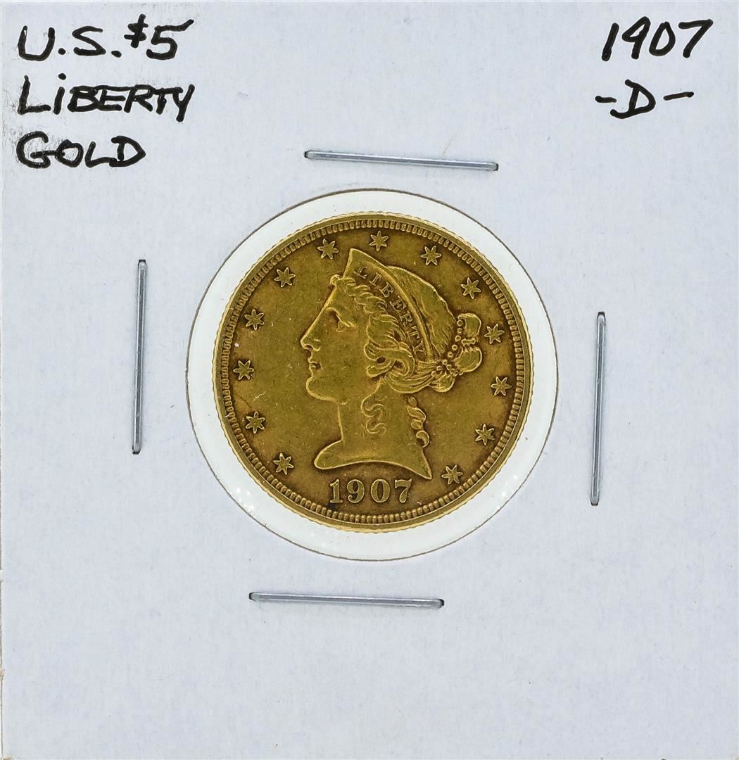 One 1907-D $5 Liberty Head Half Eagle Gold Coin.