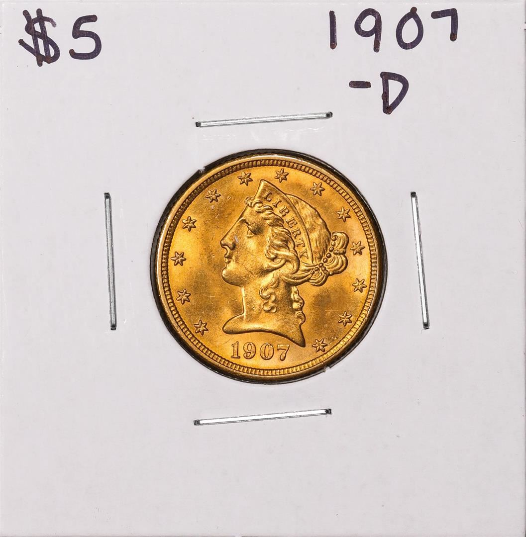 One 1907-D $5 Liberty Head Half Eagle Gold Coin.
