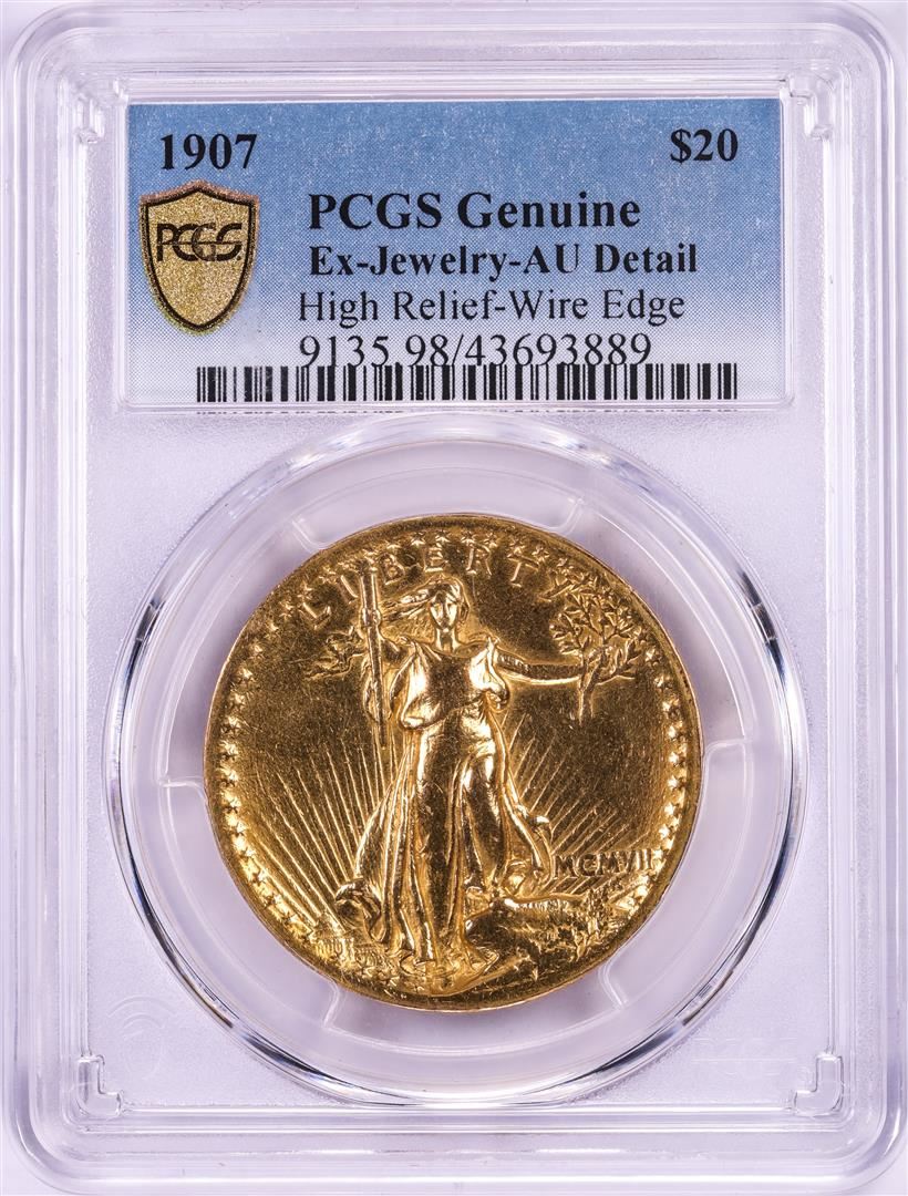 One 1907 High Relief $20 St. Gaudens Double Eagle Gold Coin PCGS AU Details. PCGS Graded.