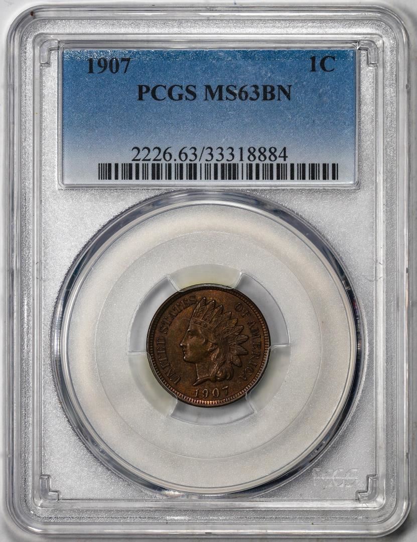 One 1907 Indian Cent Coin PCGS MS63BN. PCGS Graded.