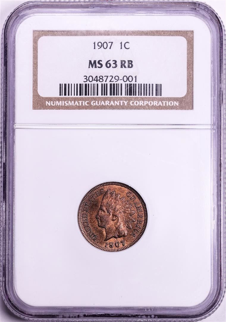 One 1907 Indian Head Cent Coin NGC MS63RB. NGC Certified.