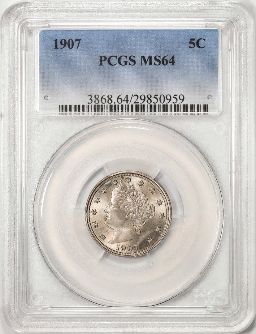One 1907 Liberty V Nickel Coin PCGS MS64. PCGS Graded.