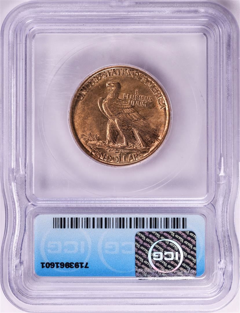 One 1907 No Periods $10 Indian Head Eagle Gold Coin ICG MS62. ICG Certified.