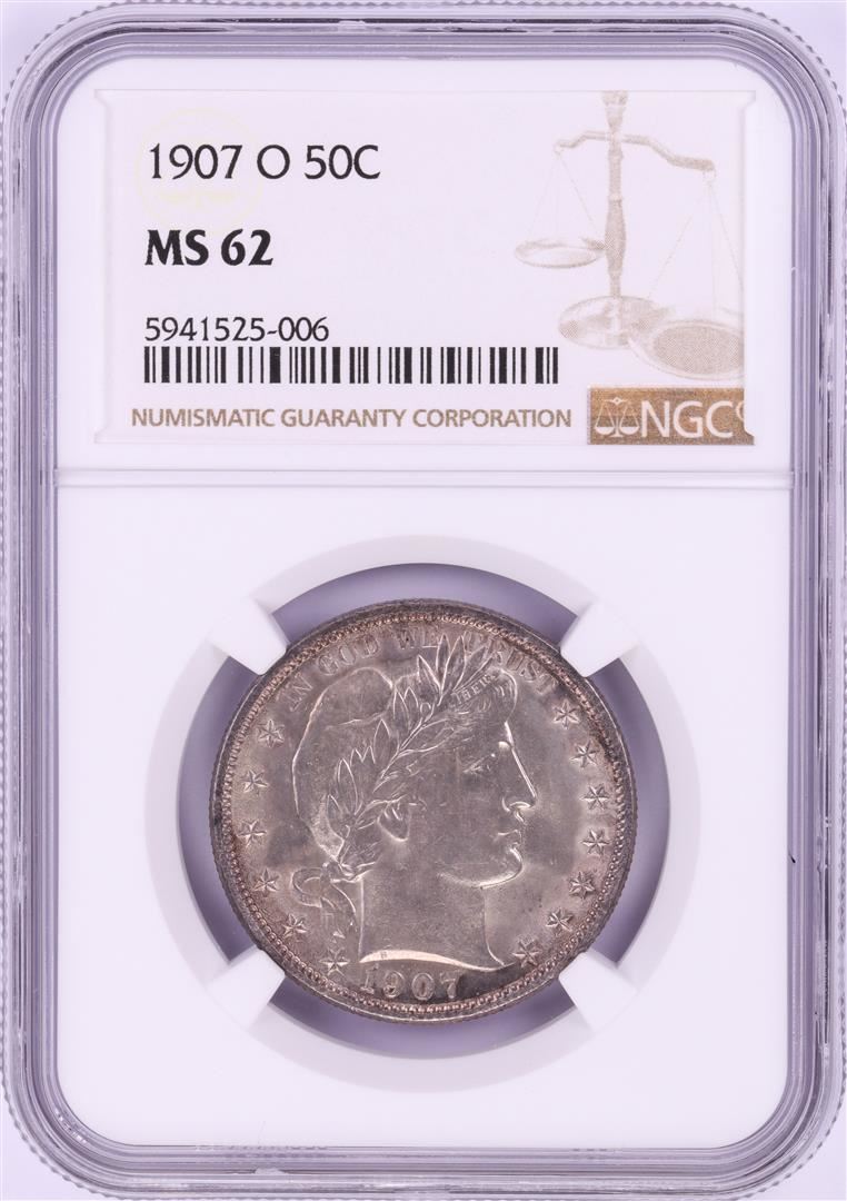 One 1907-O Barber Half Dollar Coin NGC MS62. NGC Certified.