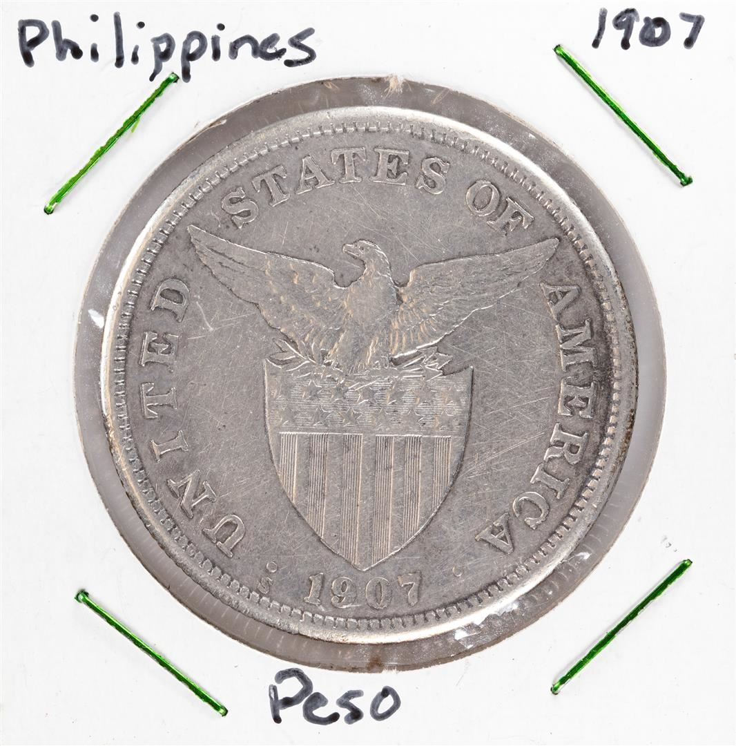 One 1907 Philippines 1 Peso Silver Coin.