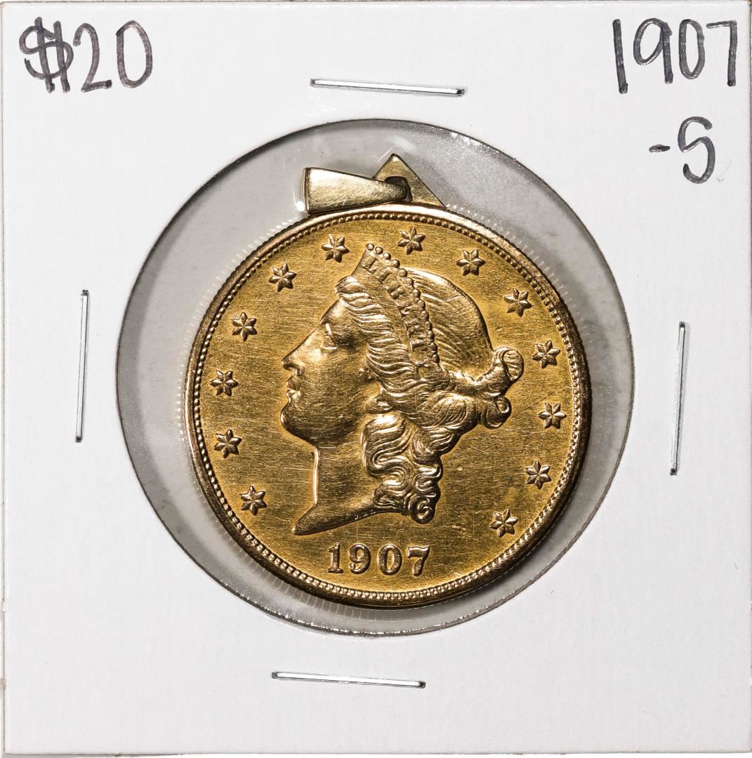 One 1907-S $20 Liberty Head Double Eagle Gold Coin Pendant.