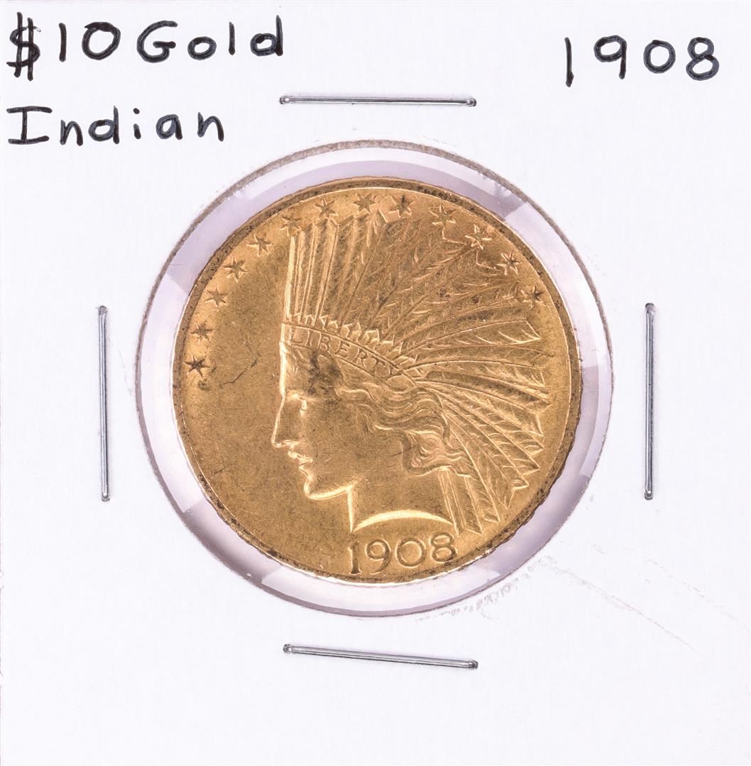 One 1908 $10 Indian Head Eagle Gold Coin.