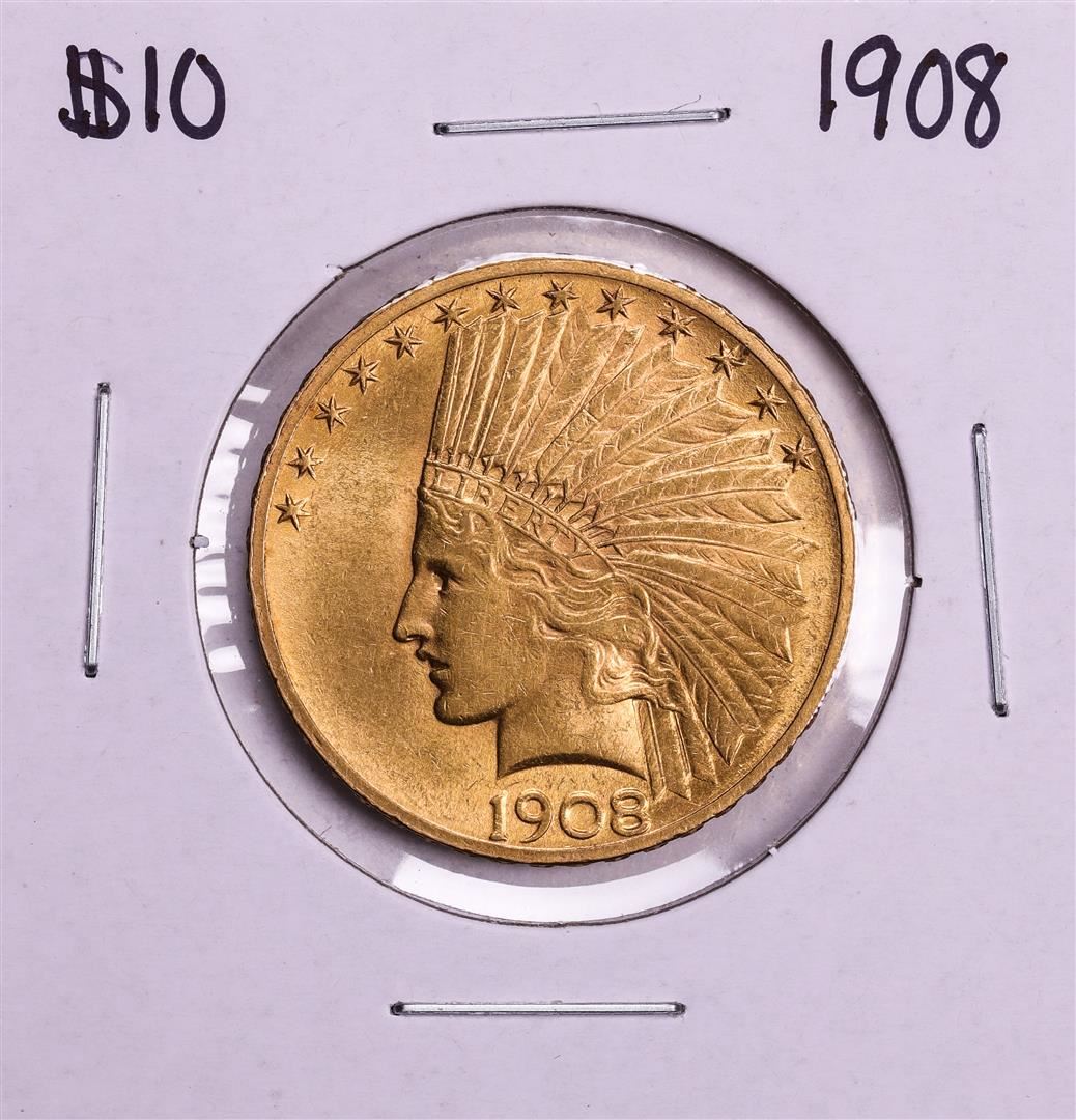 One 1908 $10 Indian Head Eagle Gold Coin.