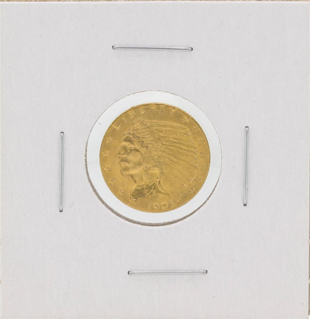 One 1908 $2 1/2 Indian Head Quarter Eagle Gold Coin.