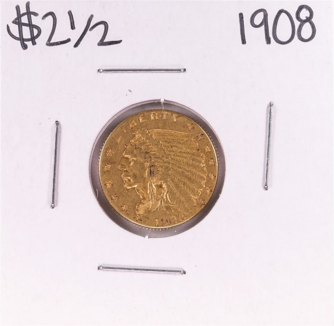 One 1908 $2 1/2 Indian Head Quarter Eagle Gold Coin.
