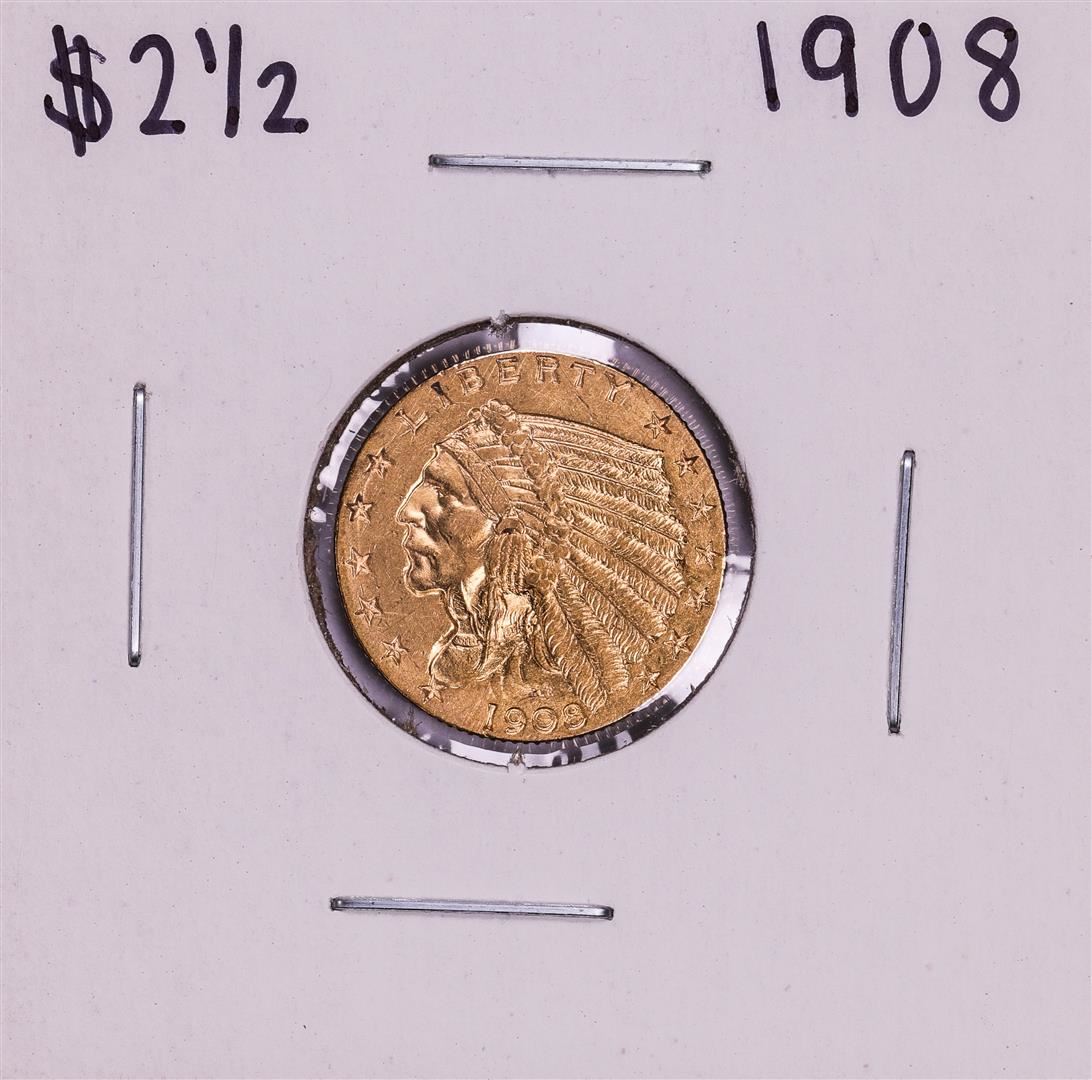 One 1908 $2 1/2 Indian Head Quarter Eagle Gold Coin.