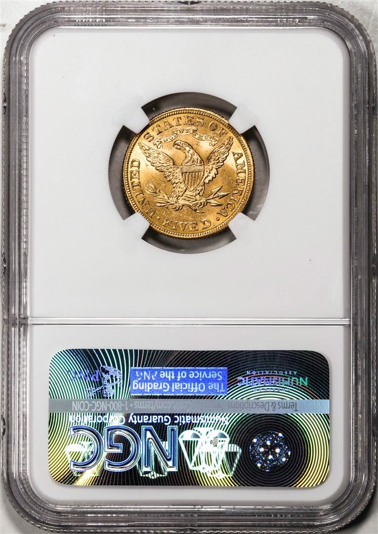 One 1908 $5 Liberty Head Half Eagle Gold Coin NGC MS64. NGC Certified.