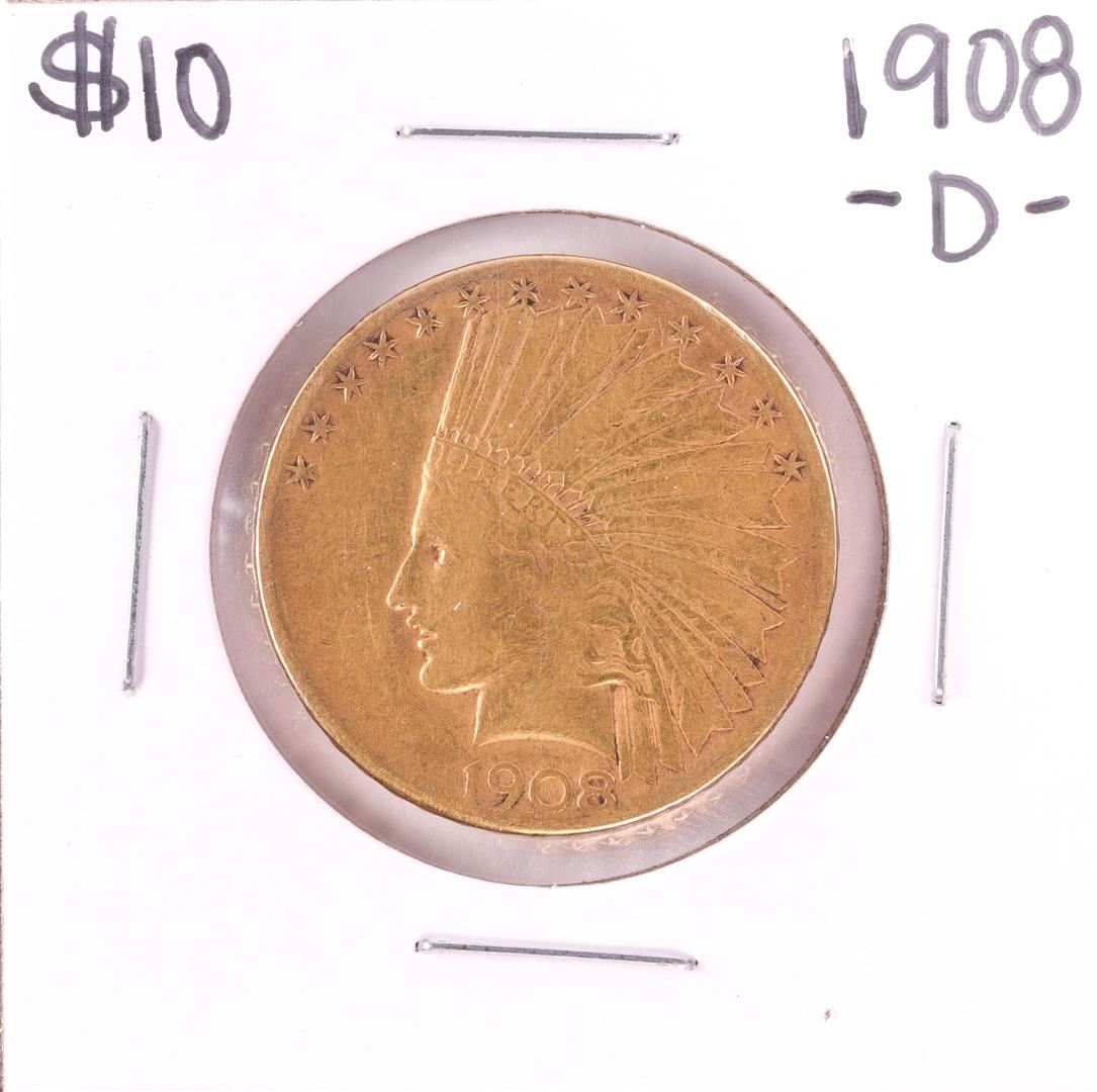 One 1908-D $10 Indian Head Eagle Gold Coin.