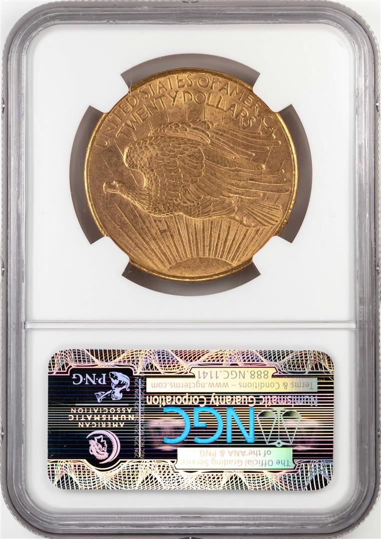 One 1908-D No Motto $20 St. Gaudens Double Eagle Gold Coin NGC MS61. NGC Certified.