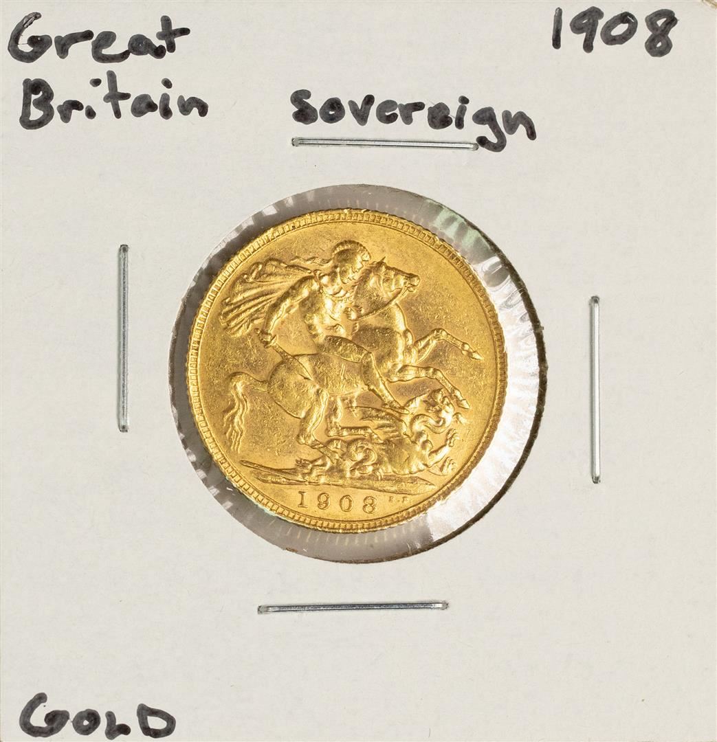 One 1908 Great Britain Sovereign Gold Coin.