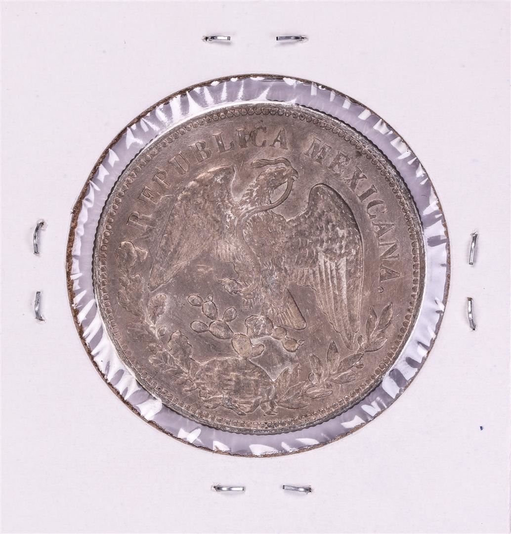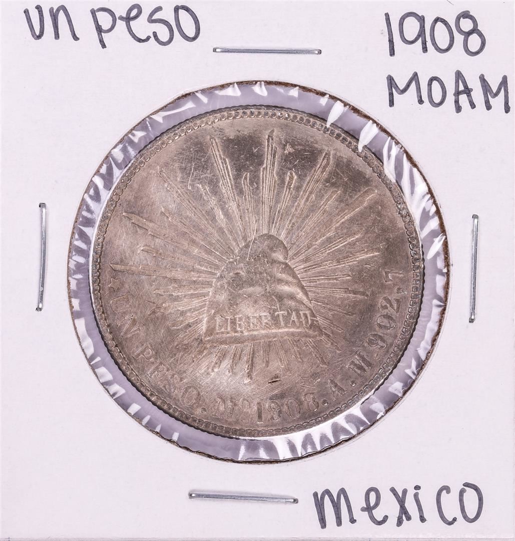 One 1908 Mo AM Mexico Un Peso Silver Coin.