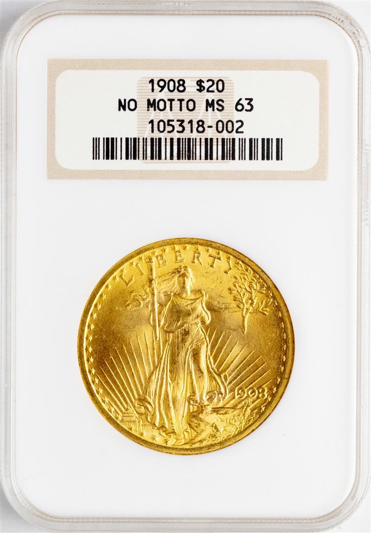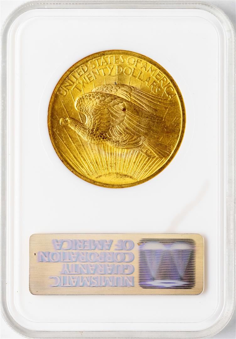 One 1908 NM $20 St. Gaudens Double Eagle Gold Coin NGC MS63. NGC Certified.