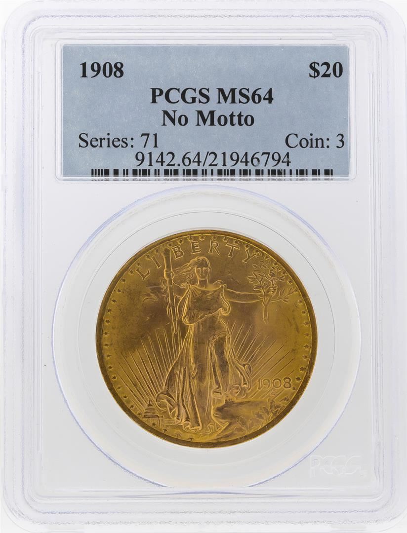 One 1908 NM $20 St. Gaudens Double Eagle Gold Coin PCGS MS64. PCGS Graded.