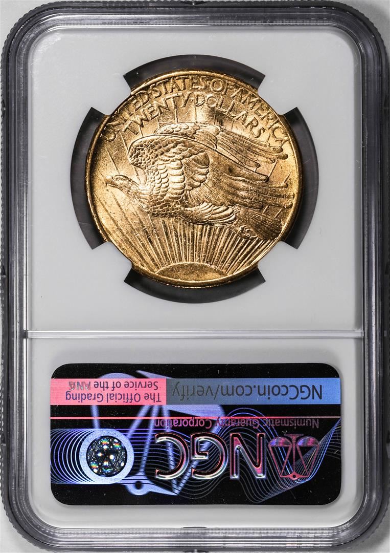 One 1908 No Motto $20 St. Gaudens Double Eagle Gold Coin NGC AU58. NGC Certified.
