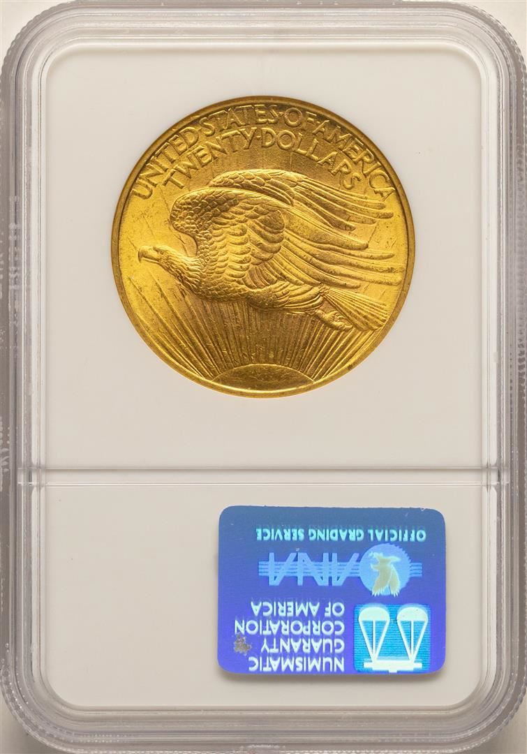 One 1908 No Motto $20 St. Gaudens Double Eagle Gold Coin NGC MS62. NGC Certified.
