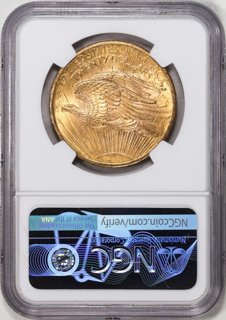 One 1908 No Motto $20 St. Gaudens Double Eagle Gold Coin NGC MS64. NGC Certified.