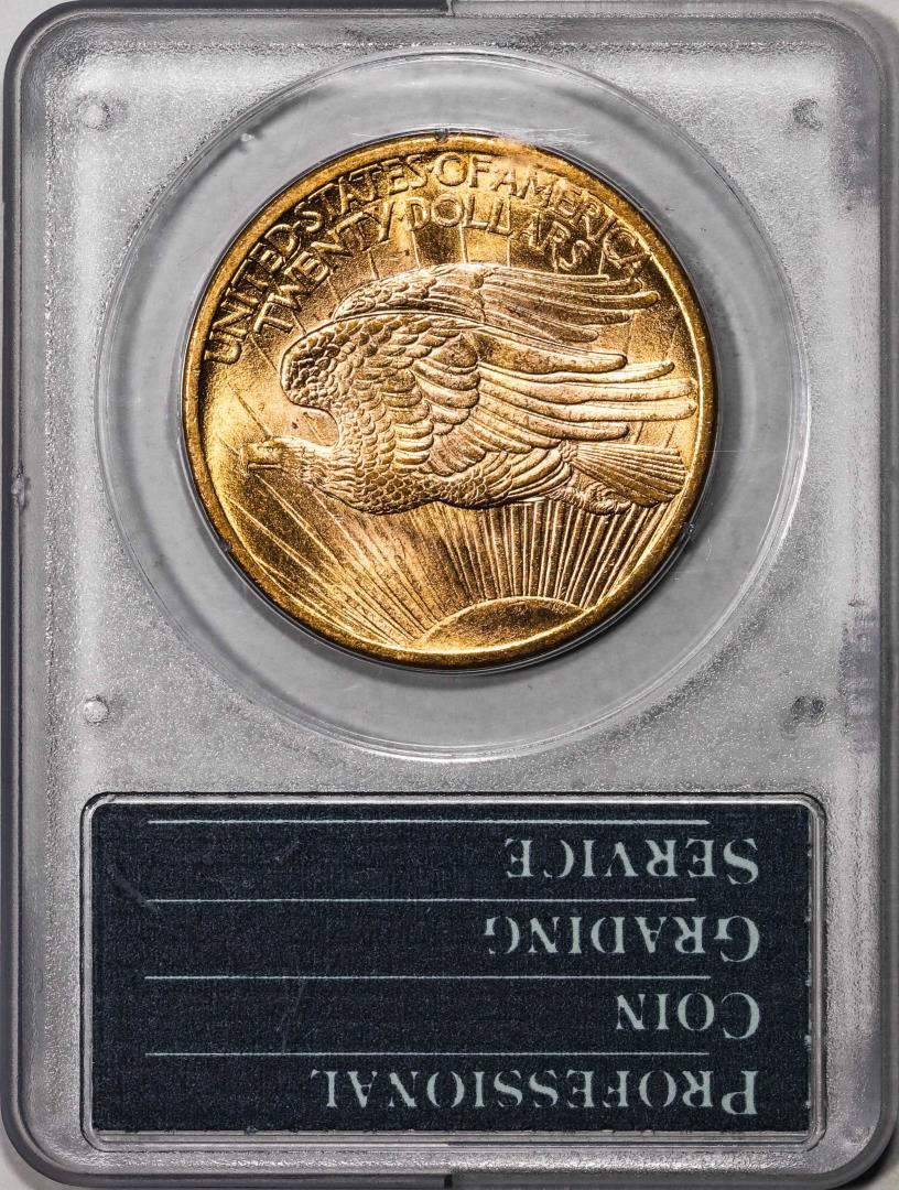 One 1908 No Motto $20 St. Gaudens Double Eagle Gold Coin PCGS MS62 Rattler Holder. PCGS Graded.