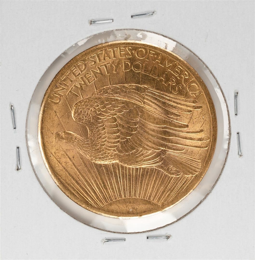 One 1908 No Motto $20 St. Gaudens Double Eagle Gold Coin.