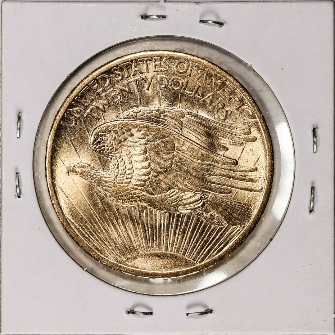 One 1908 No Motto $20 St Gaudens Double Eagle Gold Coin.
