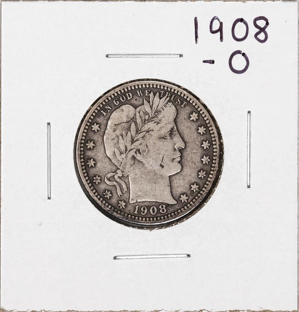 One 1908-O Barber Quarter Coin.