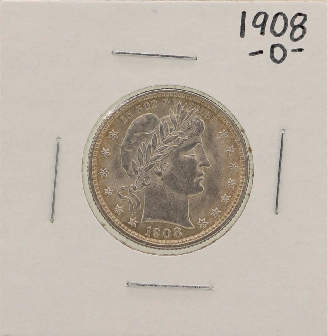 One 1908-O Barber Quarter Silver Coin.