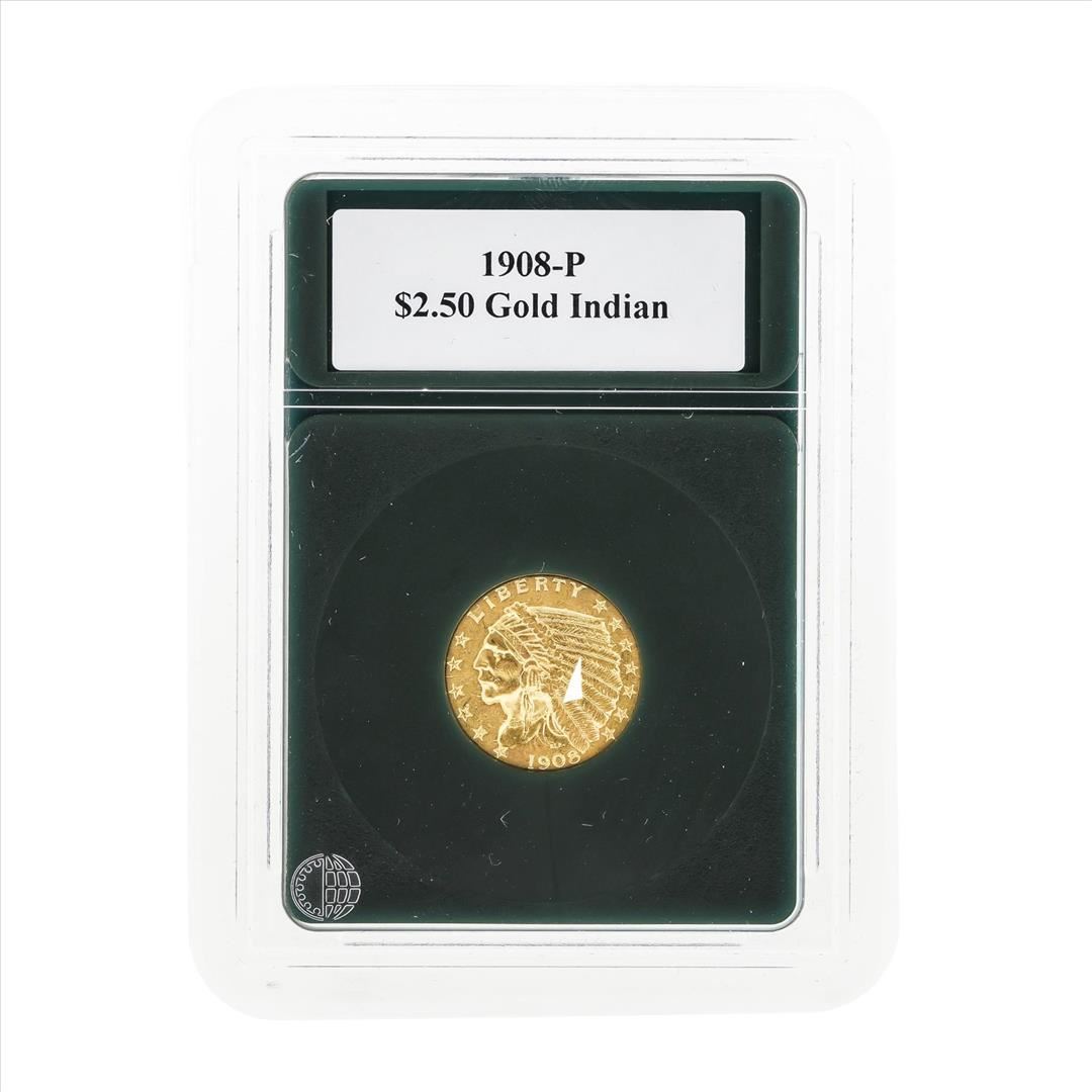 One 1908-P $2 1/2 Indian Head Quarter Eagle Gold Coin.