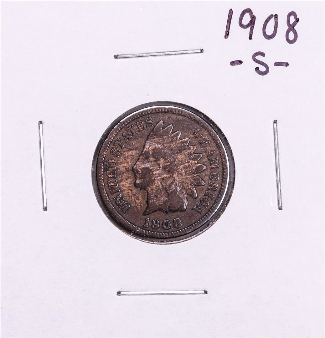 One 1908-S Indian Head Cent Coin.