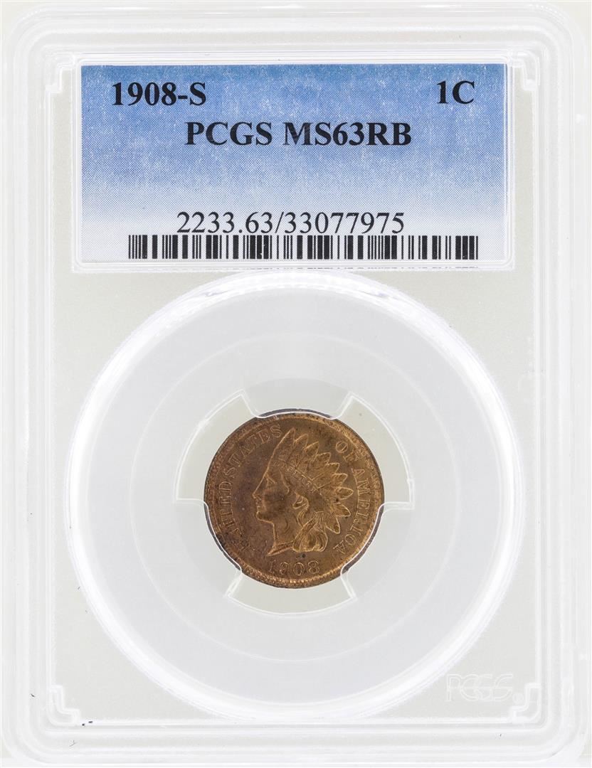One 1908-S Indian Head Penny Coin PCGS MS63RB. PCGS Graded.