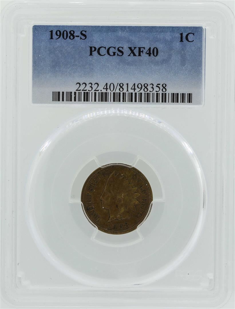 One 1908-S Indian Head Penny Coin PCGS XF40. PCGS Graded.