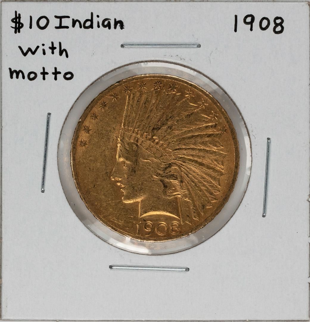 One 1908 with Motto $10 Indian Head Eagle Gold Coin.