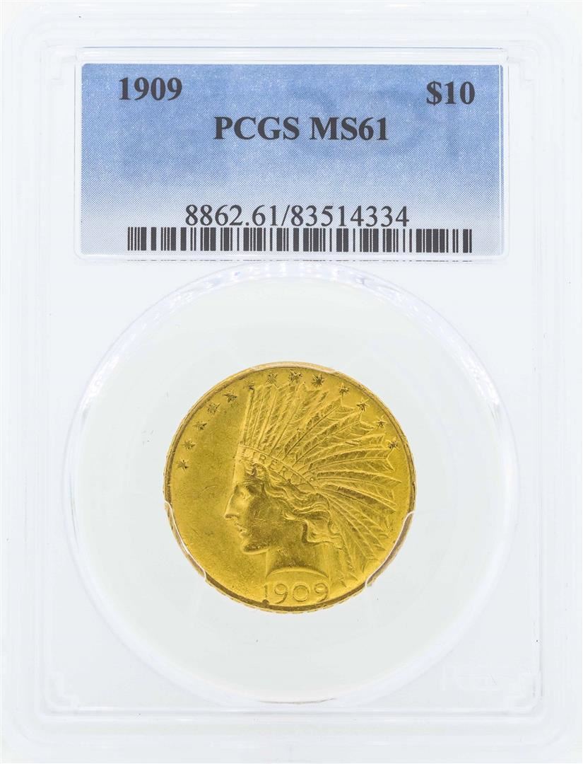 One 1909 $10 Indian Head Eagle Gold Coin PCGS MS61. PCGS Graded.
