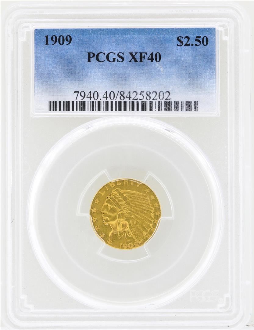 One 1909 $2 1/2 Indian Head Quarter Eagle Gold Coin PCGS XF40. PCGS Graded.