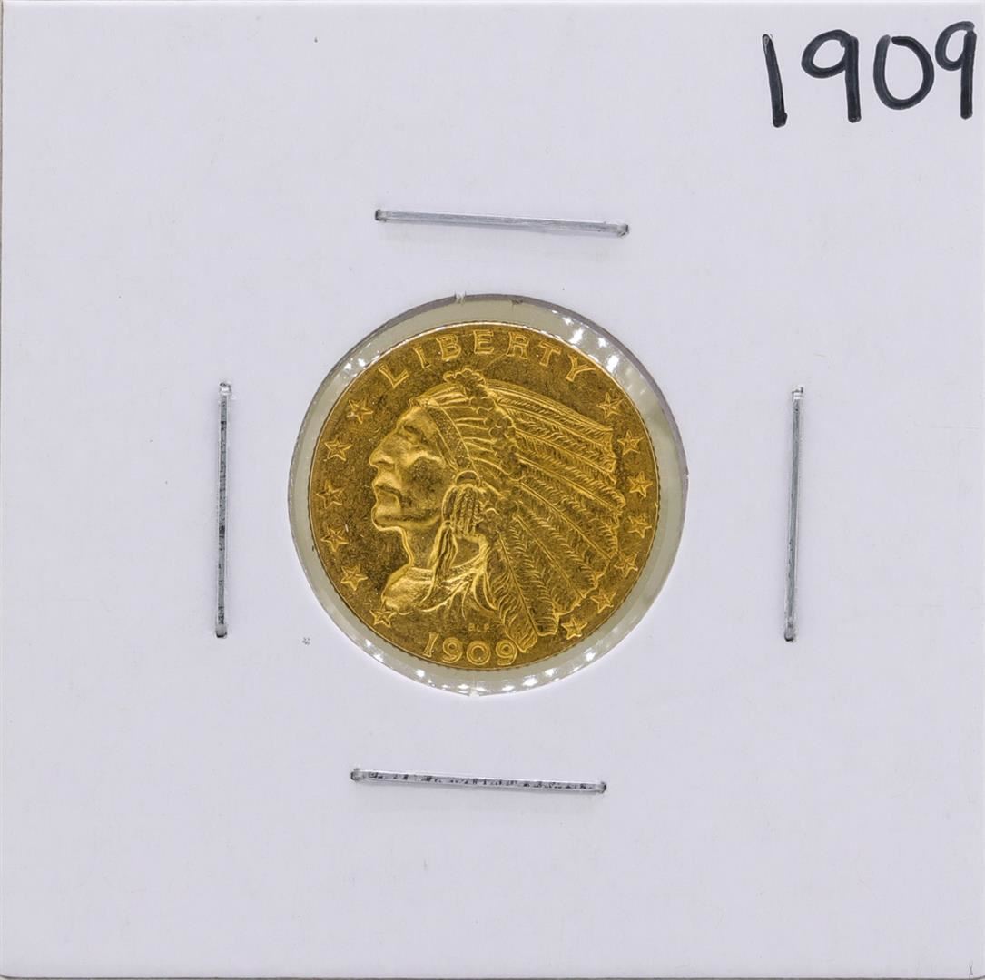 One 1909 $2 1/2 Indian Head Quarter Eagle Gold Coin.