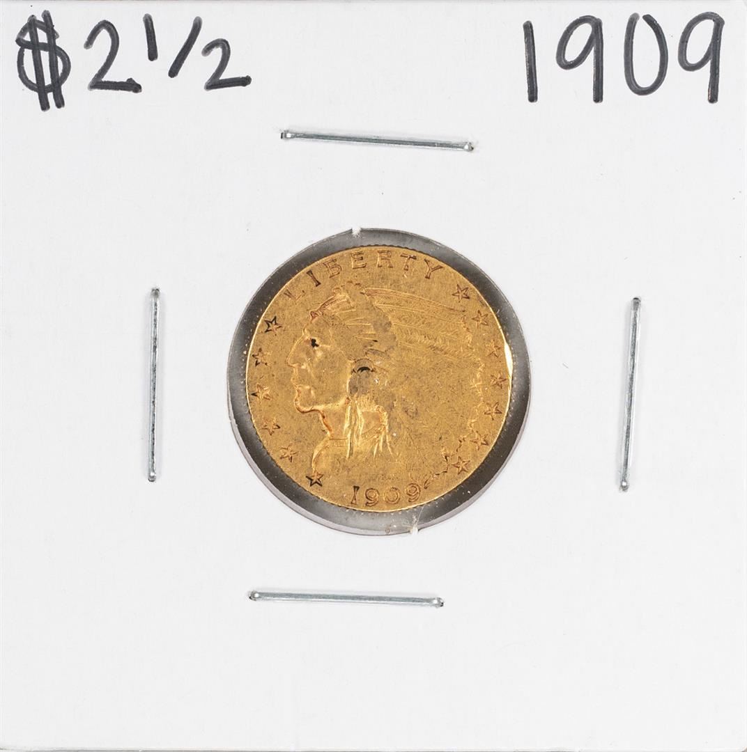 One 1909 $2 1/2 Indian Head Quarter Eagle Gold Coin.